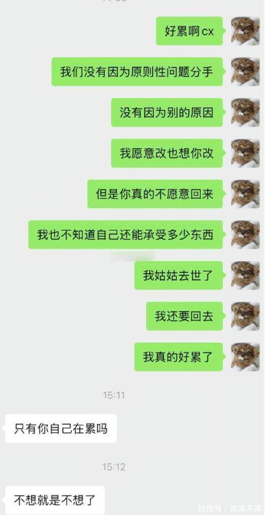 从她晒出的聊天记录来看,分手前她曾多次试图沟通,想修复这段关系,但男方的态度始终冷淡。直到后来,男方明确提出分手,理由是“太累了,不想继续了”。